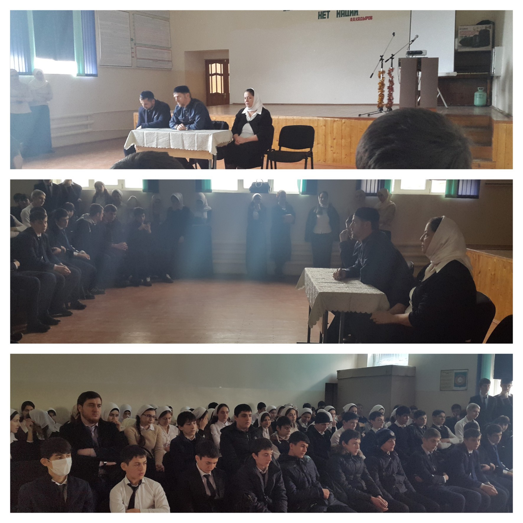 Сегодня, 11 февраля, в школе прошла встреча учащихся с представителем духовенства Мутаевым З. На встрече обсуждались вопросы поведения учащихся, их отношения к учебе и к учителям, была проведена профилактическая беседа вредных привычек.