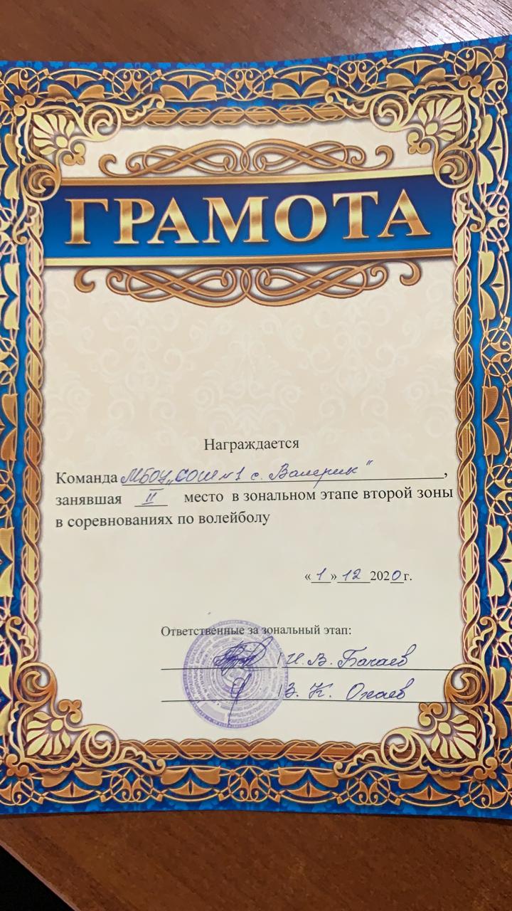 Наша команда заняла 2 место в занальном этапе районных соревнований по волейболу