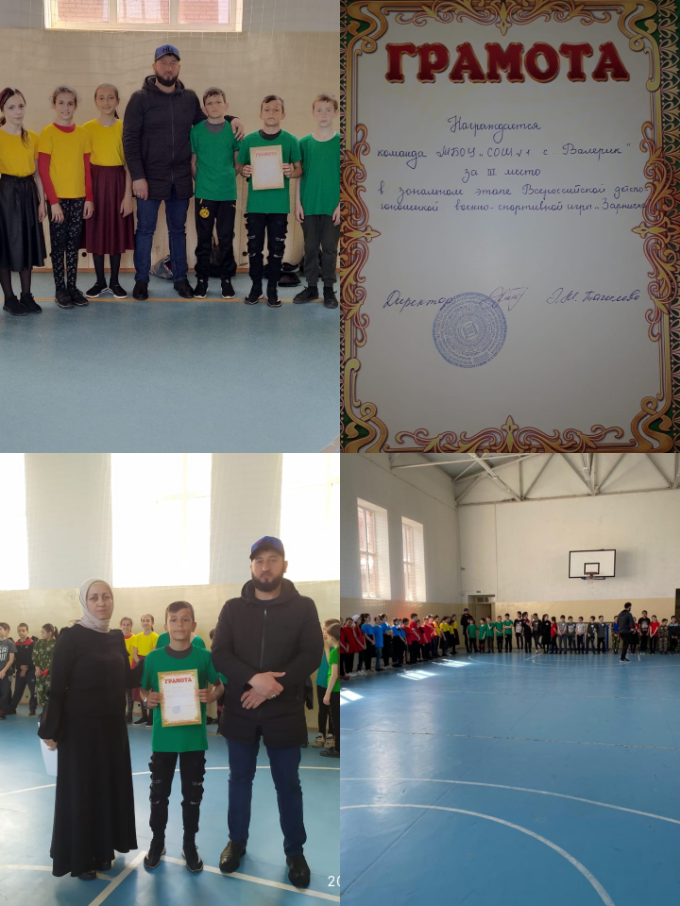 Награждается команда МБОУ "СОШ 1 с Валерик" за 3 место в зональном этапе Всероссийской детско-юношеской военно-спортивной игры "Зарничка".