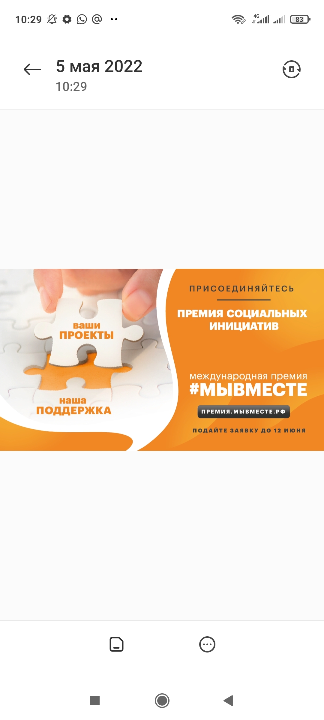 16 марта, в годовщину акции #МЫВМЕСТЕ, стартовал новый сезон Международной Премии #МЫВМЕСТЕ. Премия запущена для поддержки общественно значимых проектов, направленных на помощь людям и улучшение качества жизни. Грантовый фонд Премии составляет 90 млн руб.