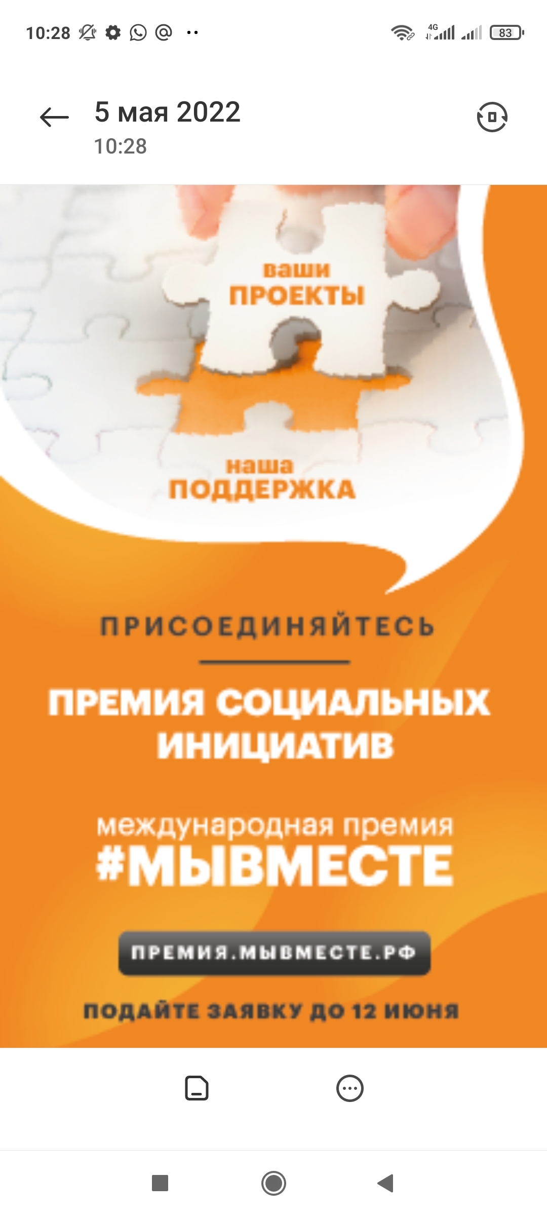 Международная Премия #МЫВМЕСТЕ – Ваши проекты - наша поддержка