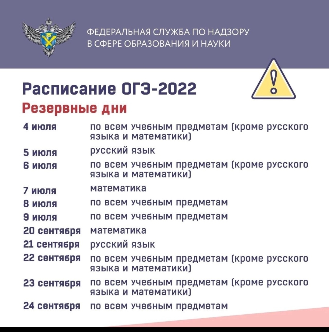 С 4 по 9 июля и с 20 по 24 сентября в расписании предусмотрены резервные дни для сдачи всех предметов.