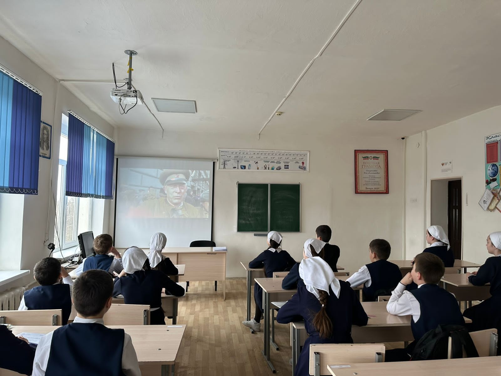 Просмотр ролика учащимися «Поезд победы»