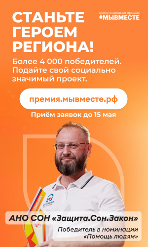 04.04.2023Старт Международной Премии #МЫВМЕСТЕ: получите поддержку своего проекта! Заявите о своем социально значимом проекте в одной из 11 номинаций. Ваше доброе дело может быть связано с помощью животным, незащищенным слоям населения, экологией, туризмом, раскрытием талантов, добровольчеством, наукой и многим другим. Читайте подробнее о номинациях и подавайте заявку на Премию до 15 мая на премия.мывместе.рф. Участвуйте как волонтер, НКО или бизнес-компания. Победителей ждет: → общественное признание → грант до 3 000 000 ₽ → специальная благодарность от руководства страны → статус «Партнер национальных проектов» → путешествие по России и дополнительные баллы в конкурсах от АНО «Россия — страна возможностей» → включение и интеграция в сообщество #МЫВМЕСТЕ → прохождение образовательной программы → бесплатное участие в ПМЭФ → продвижение в СМИ, публикация в сборнике для тиражирования, медиасопровождение от АНО «Национальные приоритеты» Кроме того, победители смогут выбрать наставника из числа членов Оргкомитета, известных государственных и общественных деятелей, первых лиц страны. Участвуйте в Премии и познакомьте всю страну с вашим проектом!