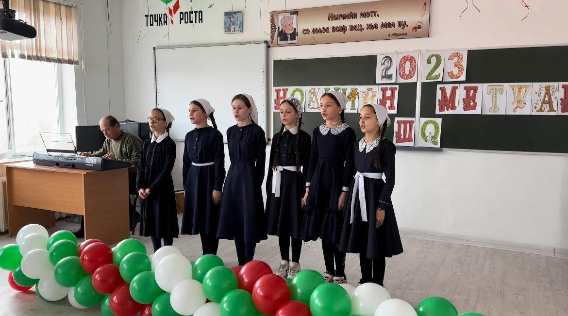 В рамках нацпроекта "Образование" 19.12.2023 года, в МБОУ "СОШ 1 с. Валерик" Прошло торжественное мероприятие, посвящённое закрытию "Года Чеченского языка".