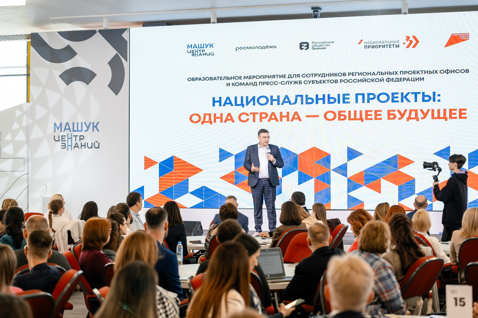 С 12 по 15 мая в Центре знаний «Машук» состоялось образовательное мероприятие для сотрудников региональных проектных офисов и пресс-служб глав субъектов Российской Федерации «Национальные проекты: «одна страна – общее будущее». Более 230 специалистов в сфере коммуникаций из 81 региона познакомились с моделями работы по продвижению национальных проектов и стратегических инициатив, организации эффективной и устойчивой модели управления медиатрендами. Среди спикеров программы – федеральные и региональные эксперты в области проектной деятельности и связей с общественностью.
