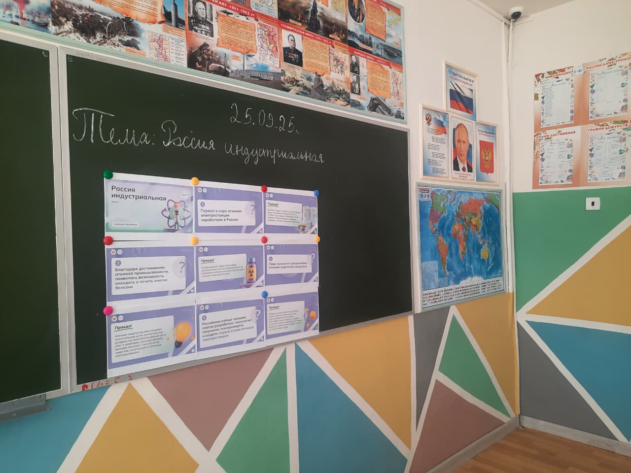 25.09.2025 года в МБОУ «СОШ №1 с.Валерик им.А.А.Касаева» прошли профориентационные занятия на тему: Россия индустриальная: атомные технологии.